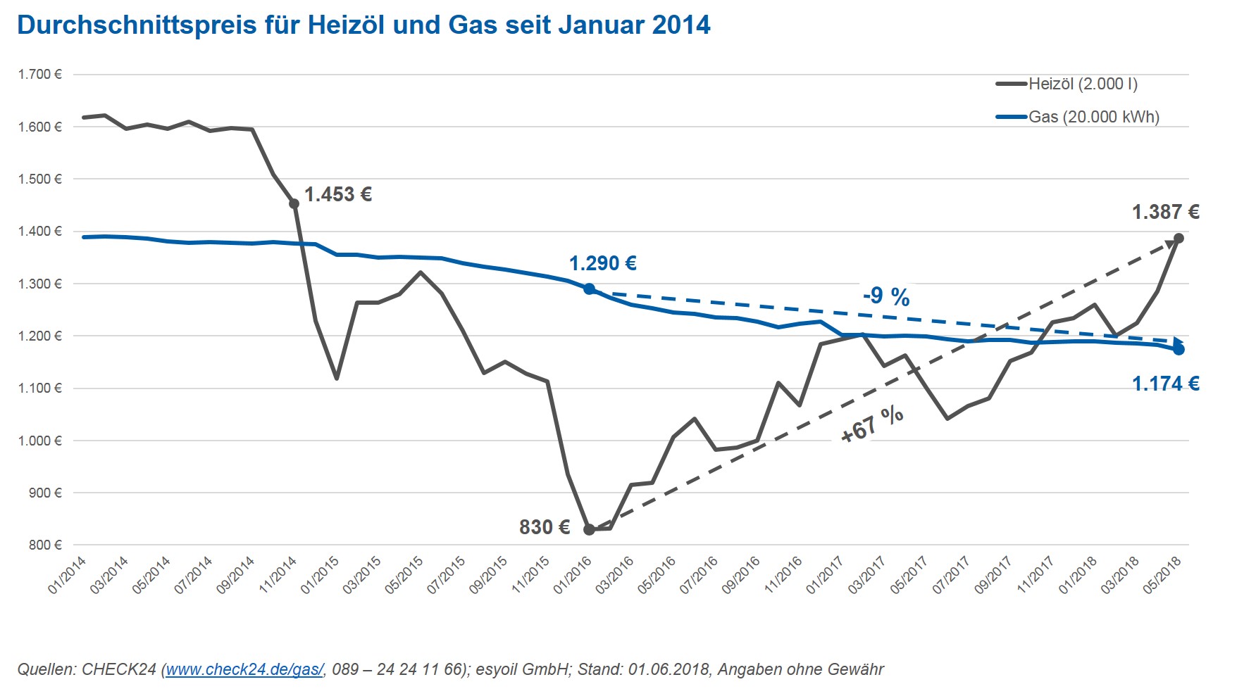 Zurück zu Heizöl so teuer wie zuletzt 2014, Gaspreise sinken weiter