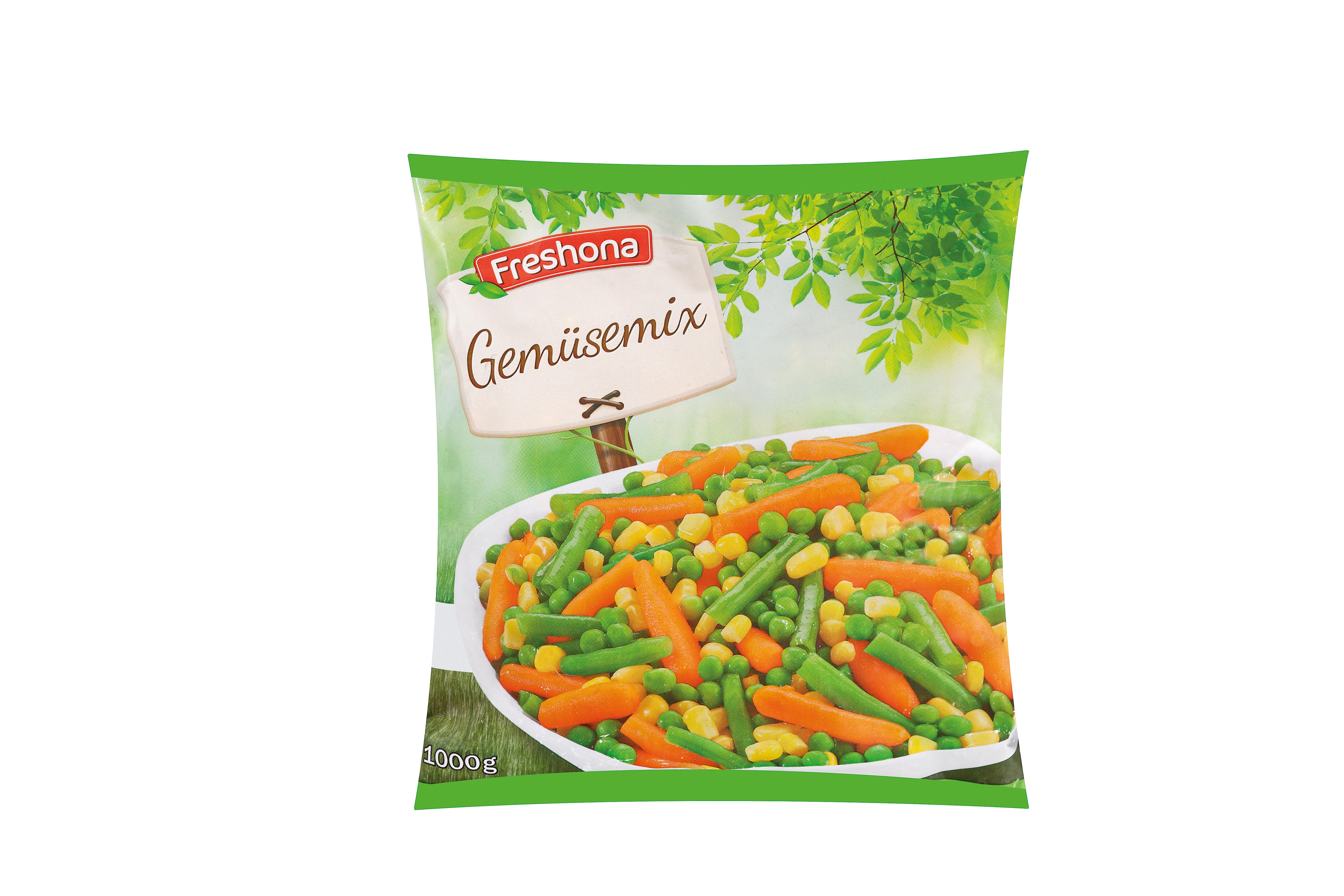 Der belgische Hersteller Greenyard Frozen Belgium N.V. informiert über einen Warenrückruf des Produktes "Freshona Gemüsemix, 1000 g". Bild: "obs/LIDL"