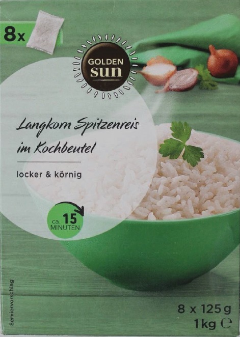 "Golden Sun Langkorn Spitzenreis im Kochbeutel, 1kg". Bild: Lidl Fotograf: Lidl