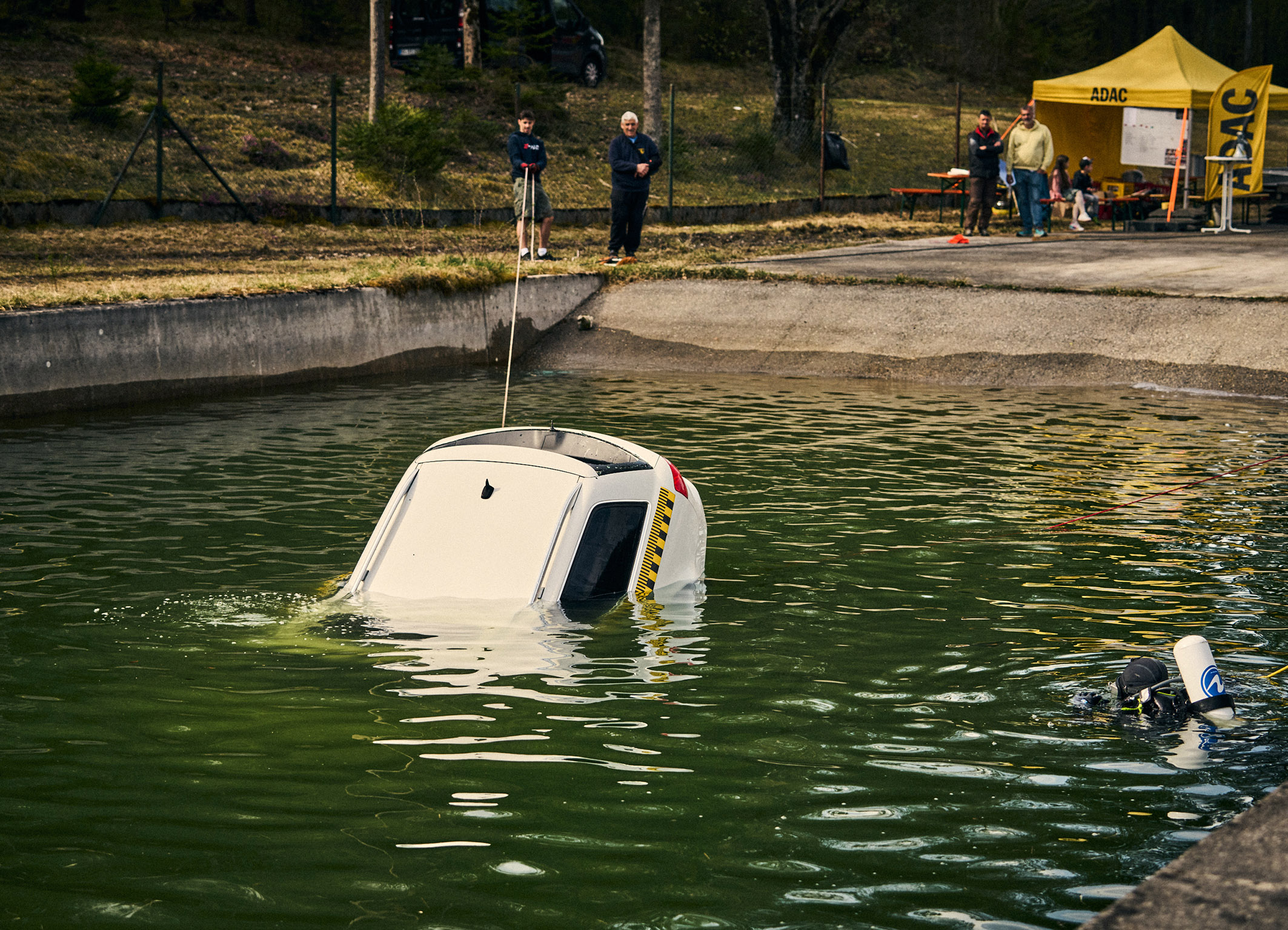 Läuft das Auto mit Wasser voll, stellt es sich steil auf. Bild: ADAC Fotograf: Rasmus Kaessmann