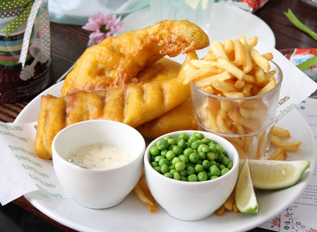 "Fish and chips at Tasha's"