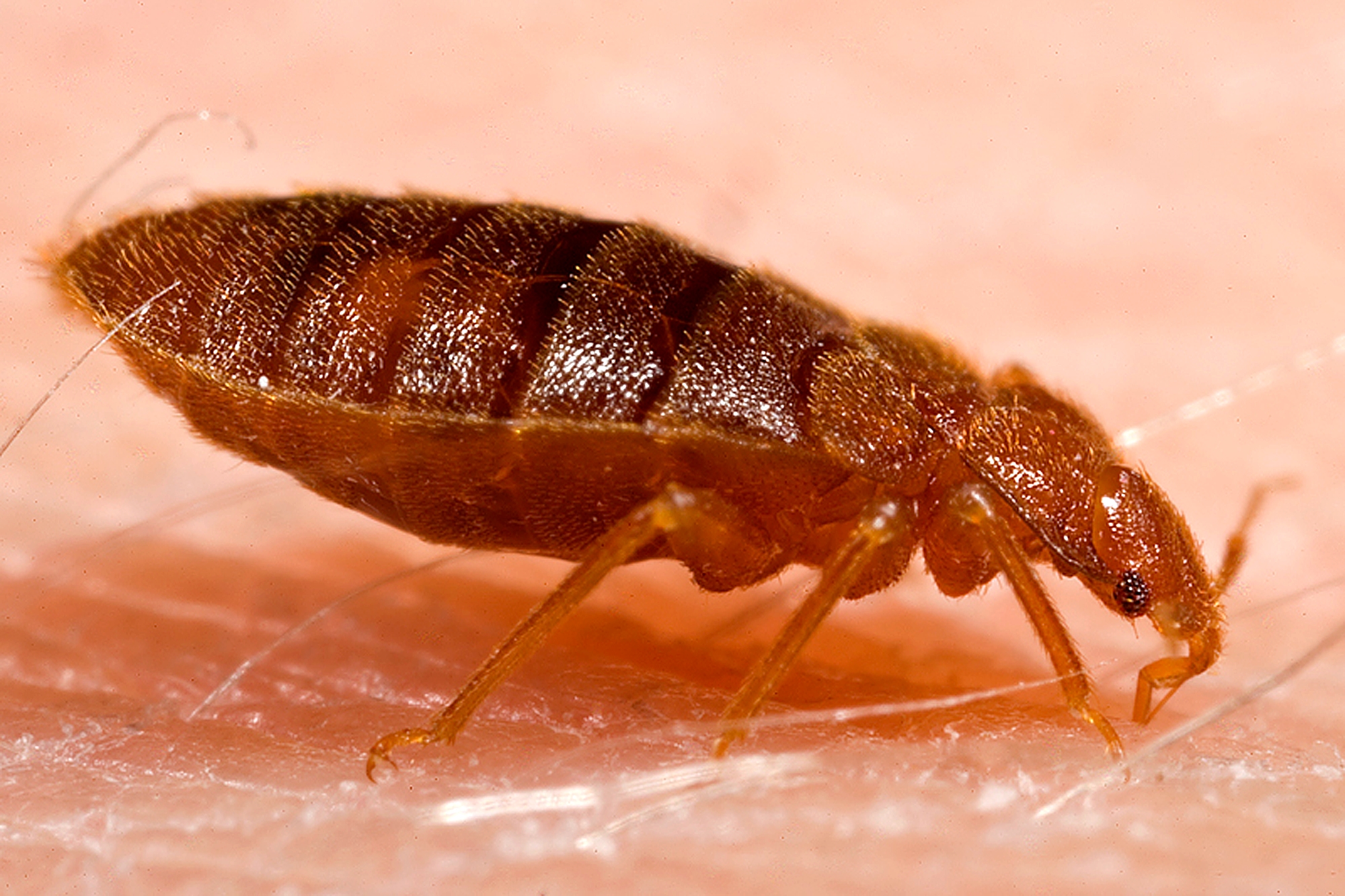 Bettwanze auf menschlicher Haut bei einer Blutmahlzeit