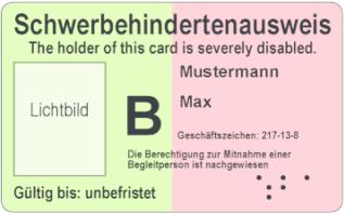 Vorderseite eines Schwerbehindertenausweises in Deutschland Form grün/orange
